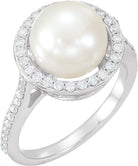 14K White Cultured White Freshwater Pearl & 3/8 CTW Natural Diamond Ring