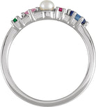 14K White Cultured White Freshwater Pearl & Natural Multi-Gemstone Ring