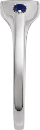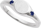 14K White Engravable Lab-Grown Blue Sapphire Signet Ring