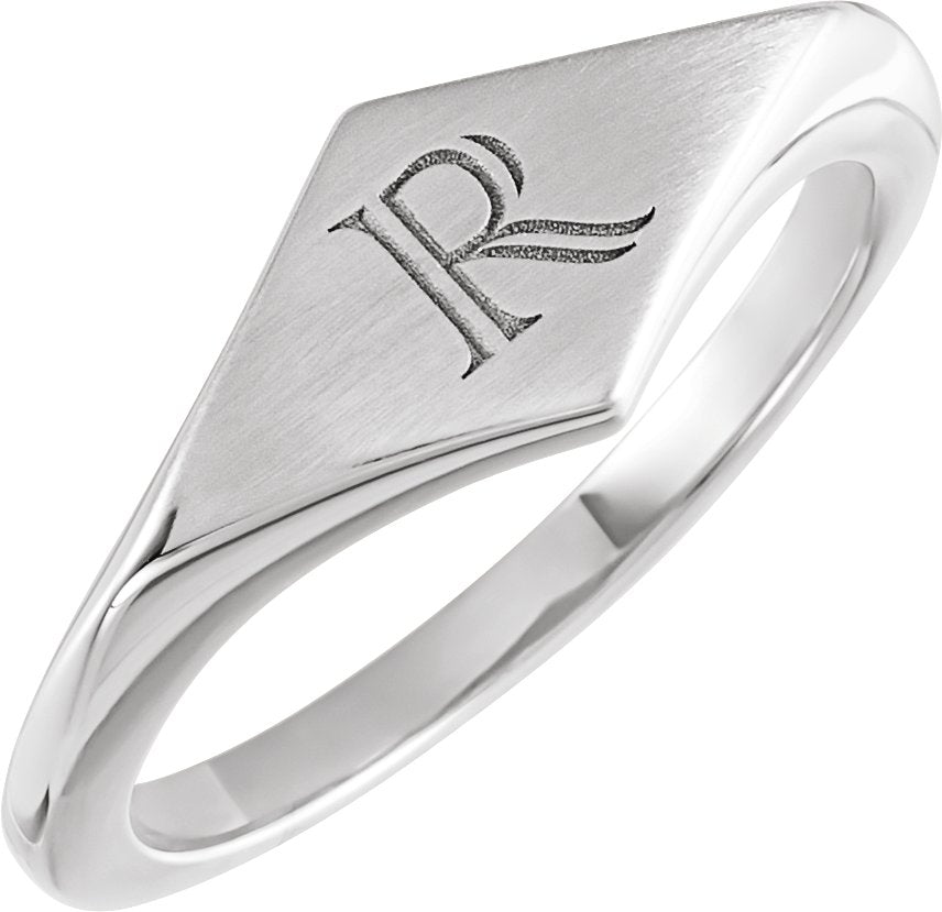 14K White Geometric Signet Ring