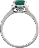 14K White Lab-Grown Emerald & 1/6 CTW Natural Diamond Ring