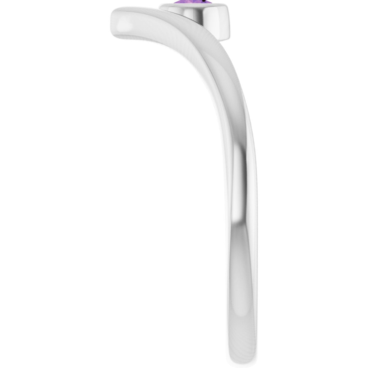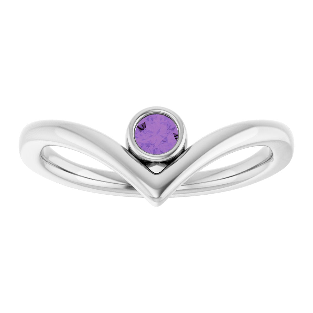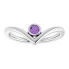 14K White Natural Amethyst Bezel-Set V Ring