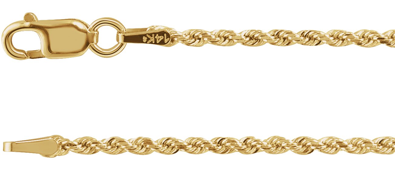 14K Yellow 1.6 mm Diamond-Cut Rope 18" Chain