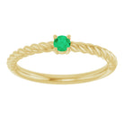 14K Yellow 3 mm Lab-Grown Emerald Solitaire Rope Ring