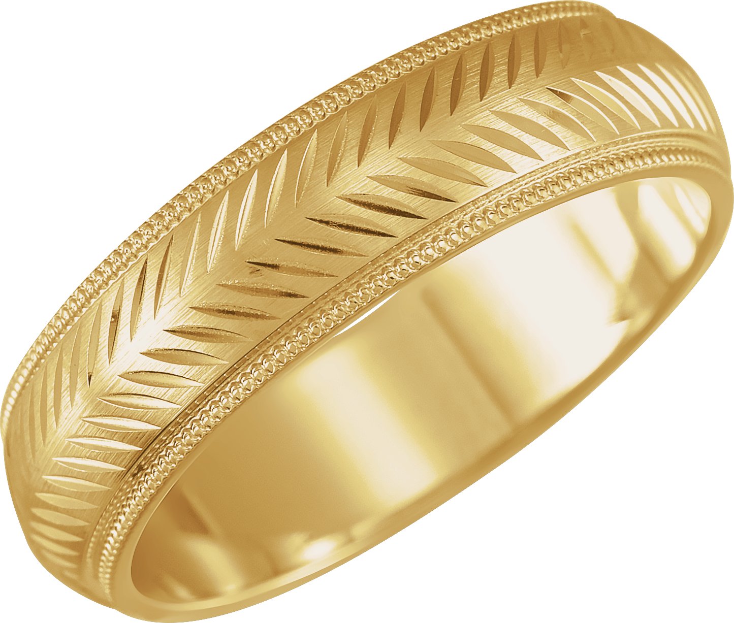 14K Yellow 6 mm Milgrain Stepped-Edge Herringbone Pattern Half Round Band Size 10