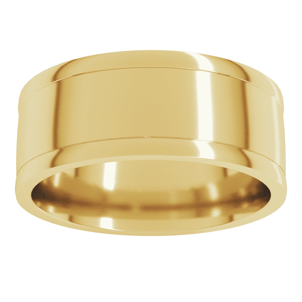 14K Yellow 9 mm Round-Edge Grooved Comfort-Fit Half Round Band Size 6.5