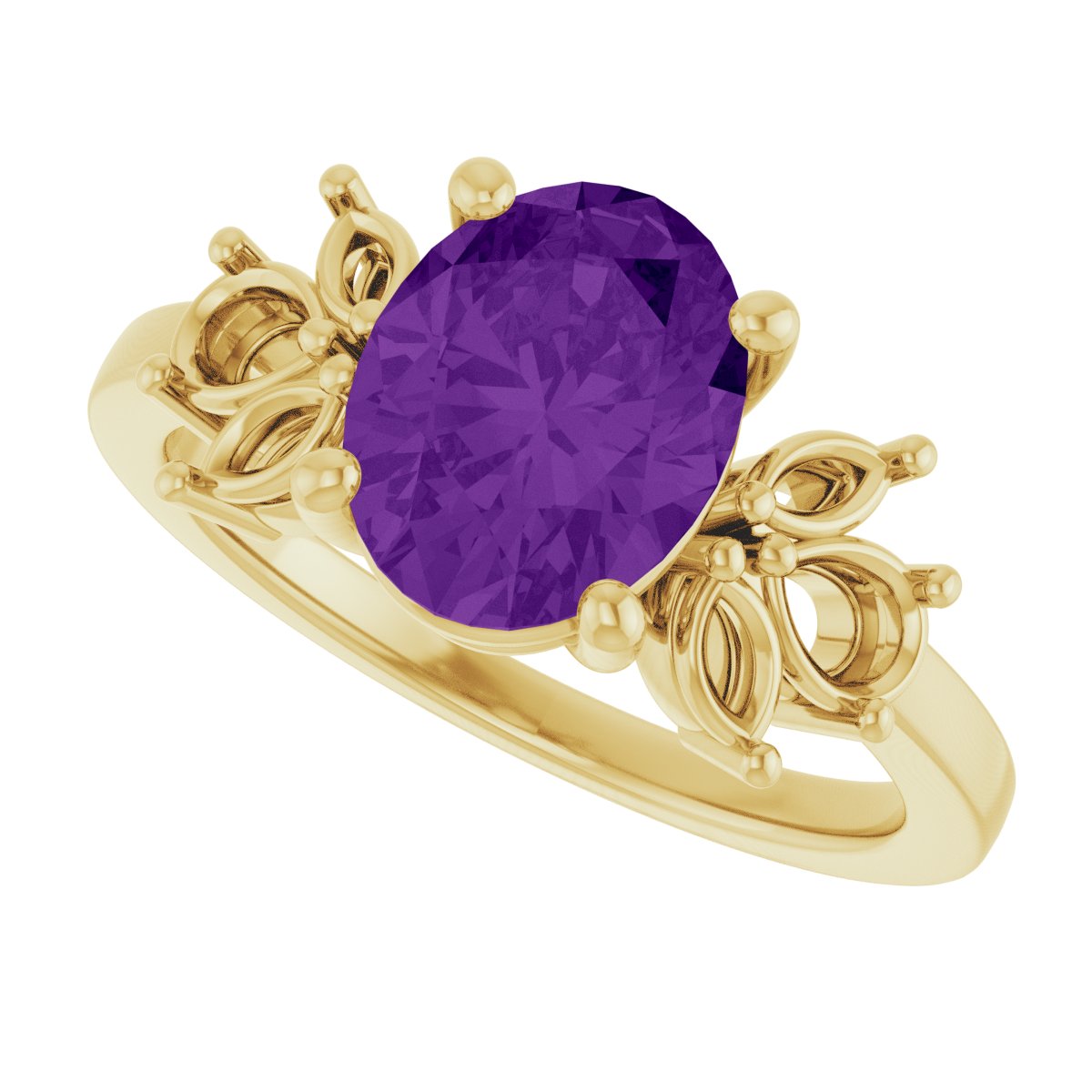 14K Yellow 9x7 mm Oval Natural Amethyst & 1/2 CTW Lab-Grown Diamond Ring