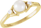 14K Yellow Cultured White Akoya Pearl & .06 CTW Natural Diamond Ring