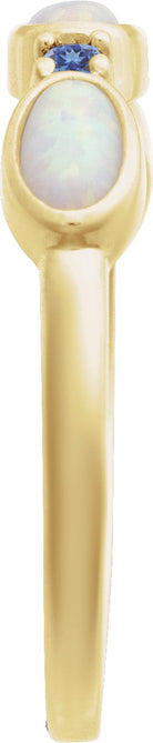14K Yellow Lab-Grown White Opal & Natural Tanzanite Stackable Ring