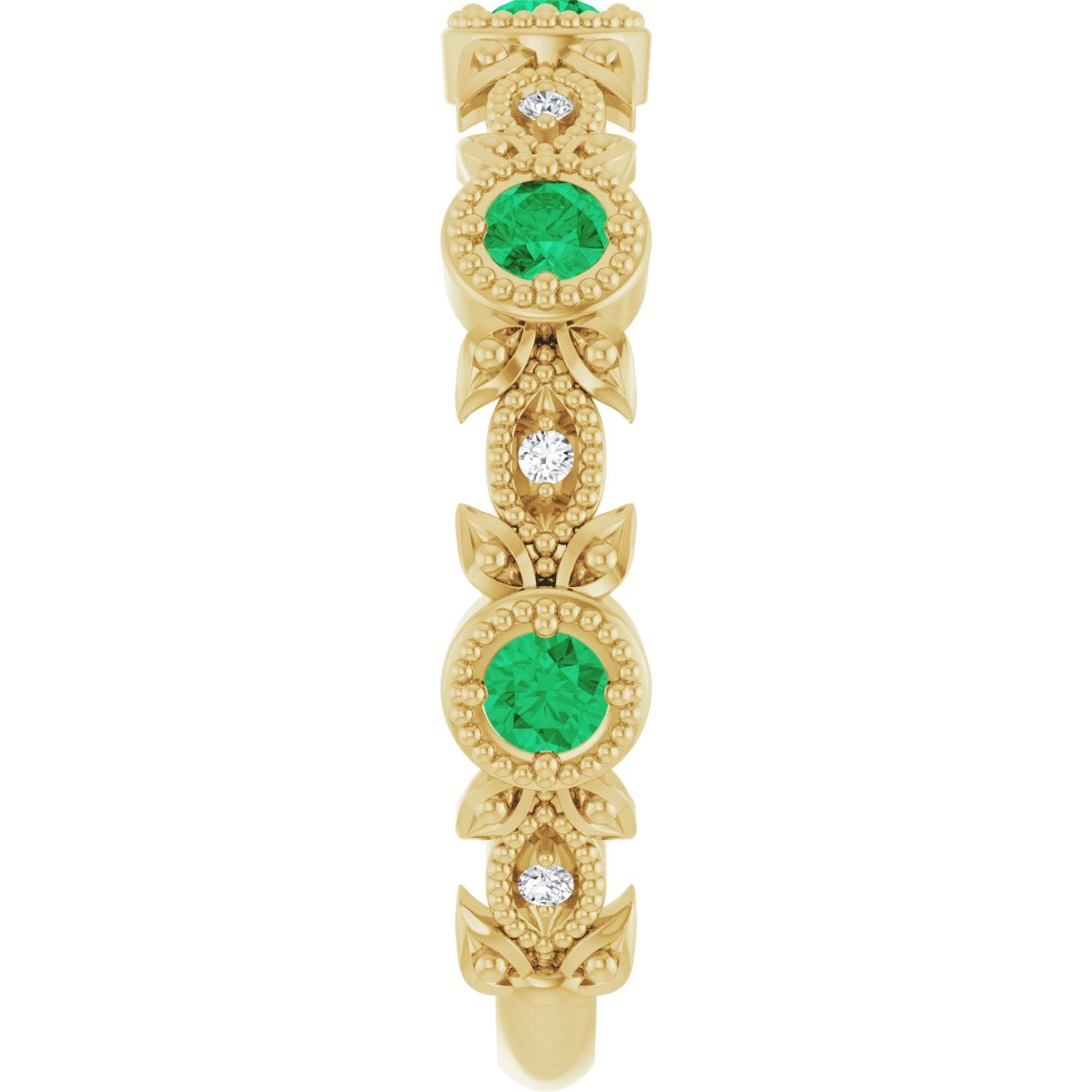 14K Yellow Natural Emerald & .03 CTW Natural Diamond Leaf Ring