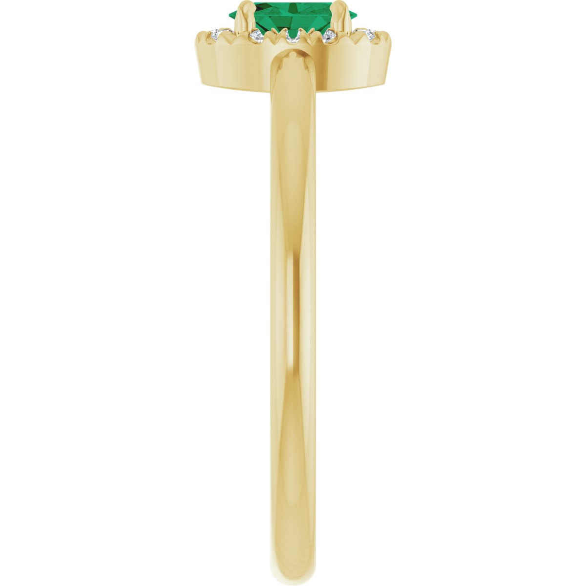 14K Yellow Natural Emerald & .05 CTW Natural Diamond French-Set Halo-Style Ring