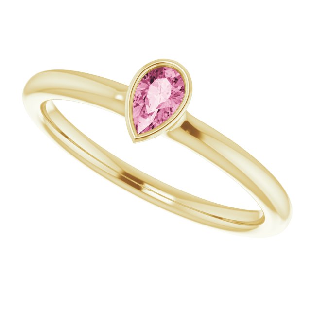 14K Yellow Natural Pink Tourmaline Stackable Ring