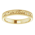 18K Yellow 3.2 mm Milgrain Edge Floral Flat Band Size 5