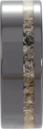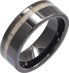 Black Ceramic Antler Wood Inlay 8 mm Comfort-Fit Flat Band Size 10
