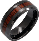 - Description: Beveled-Edge Mahogany Wood Inlay Comfort-Fit Band