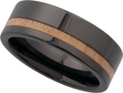 Black Ceramic Cypress Wood Inlay 8 mm Comfort-Fit Flat Band Size 9