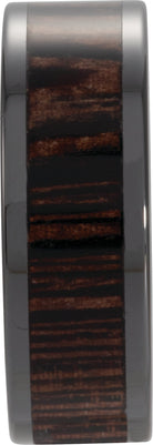 Black Ceramic Wenge Wood Inlay 6 mm Comfort-Fit Flat Band Size 8.5