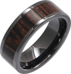 Black Ceramic Wenge Wood Inlay 8 mm Comfort-Fit Flat Band Size 13