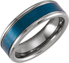 Blue PVD Tungsten 7 mm Beveled-Edge Grooved Inlay Comfort-Fit Band Size 10.5