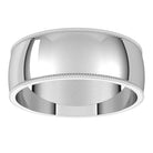 Platinum 7 mm Lightweight Milgrain Half Round Band Size 11