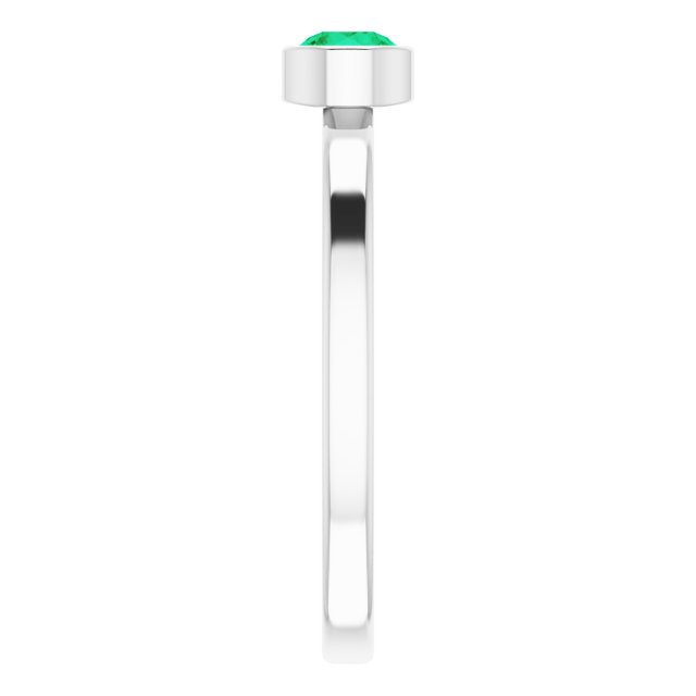 Rhodium-Plated Sterling Silver 4 mm Imitation Emerald Ring