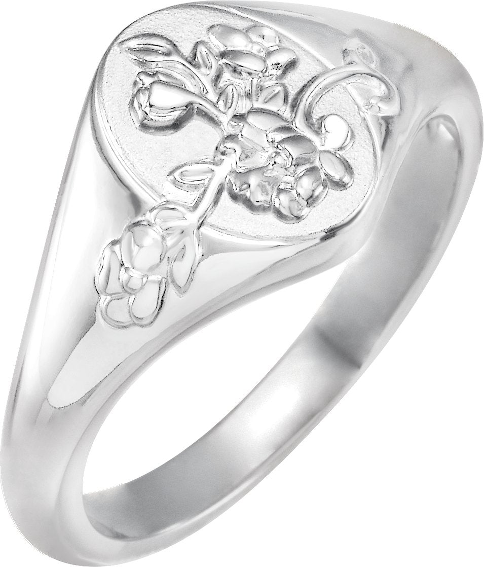 Sterling Silver 10.1 mm Oval Floral Signet Ring