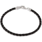 Sterling Silver Black Leather Braided 7.5" Bracelet