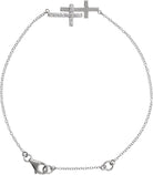 Sterling Silver Imitation Cubic Zirconia Double Sideways Cross 7-8" Bracelet