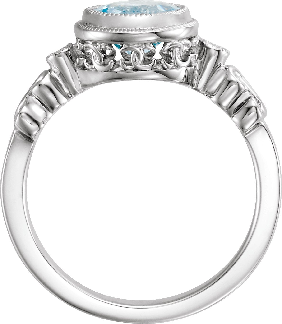 - Description: Natural Aquamarine And .02 CTW Natural Diamond Ring