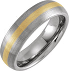Tungsten & 18K Yellow Gold PVD Inlay 6 mm Comfort-Fit Half Round Band Size 7.5