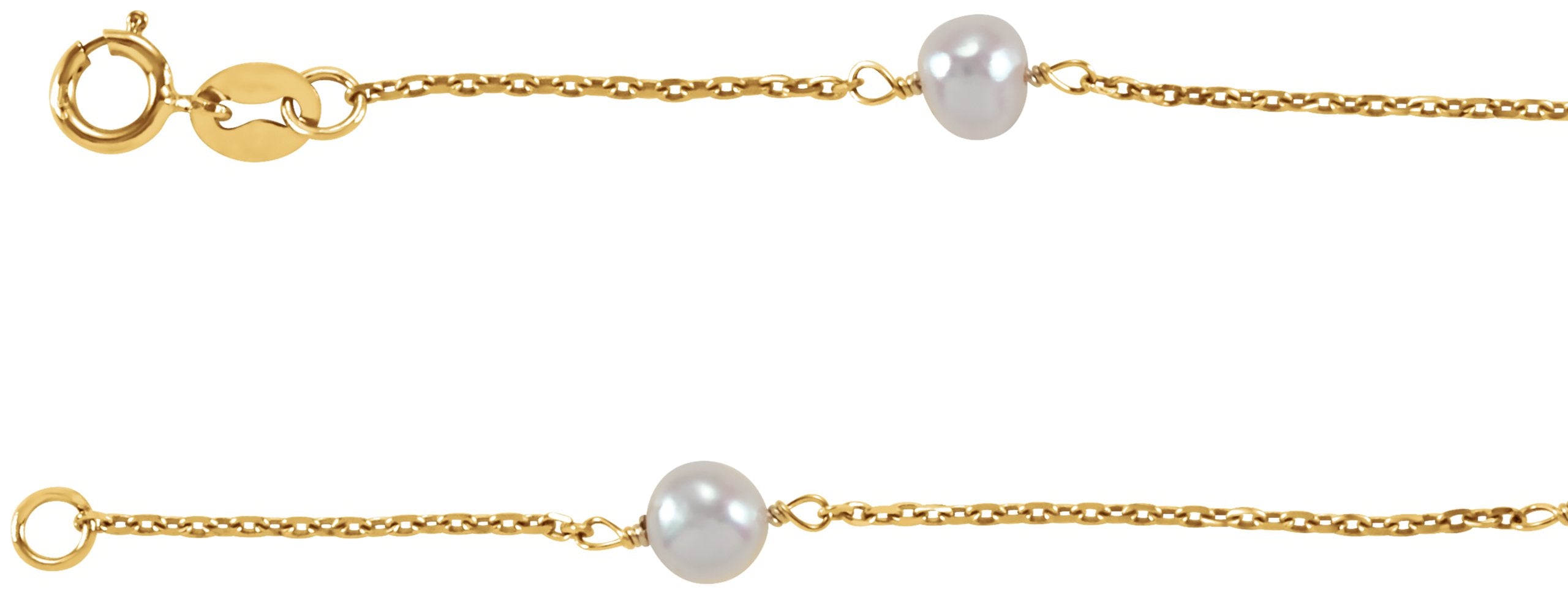 14K Yellow 4-4.5 mm Cultured White Freshwater Pearl 6" Bracelet