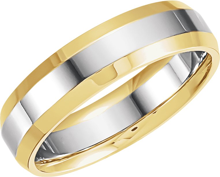 14K Yellow/White 6 mm Beveled-Edge Inlay Flat Comfort-Fit Band Size 11