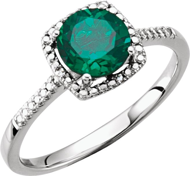 Sterling Silver Lab-Grown Emerald & .01 CTW Natural Diamond Ring