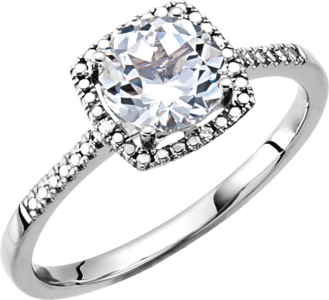 Sterling Silver Lab-Grown White Sapphire & .01 CTW Natural Diamond Ring