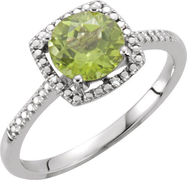 Sterling Silver Natural Peridot & .01 CTW Natural Diamond Ring