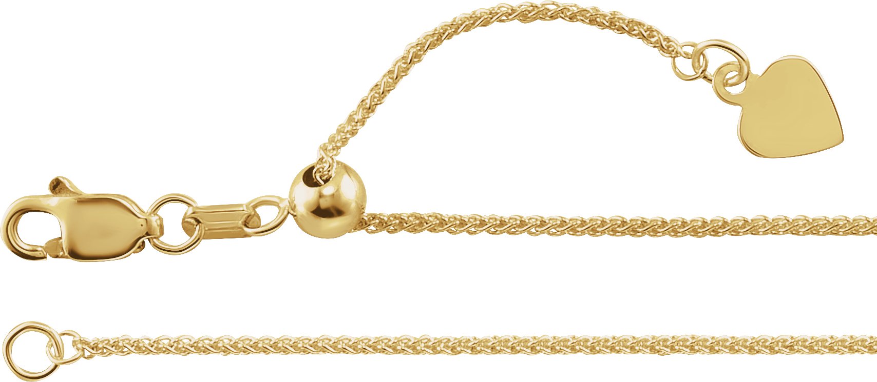 14K Yellow 1 mm Adjustable Wheat 16-22" Chain