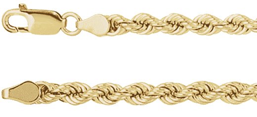 14K Yellow 4 mm Rope 24" Chain