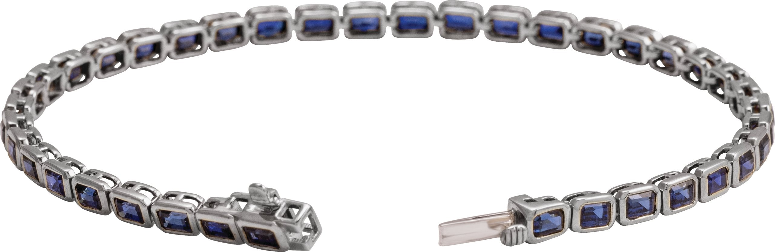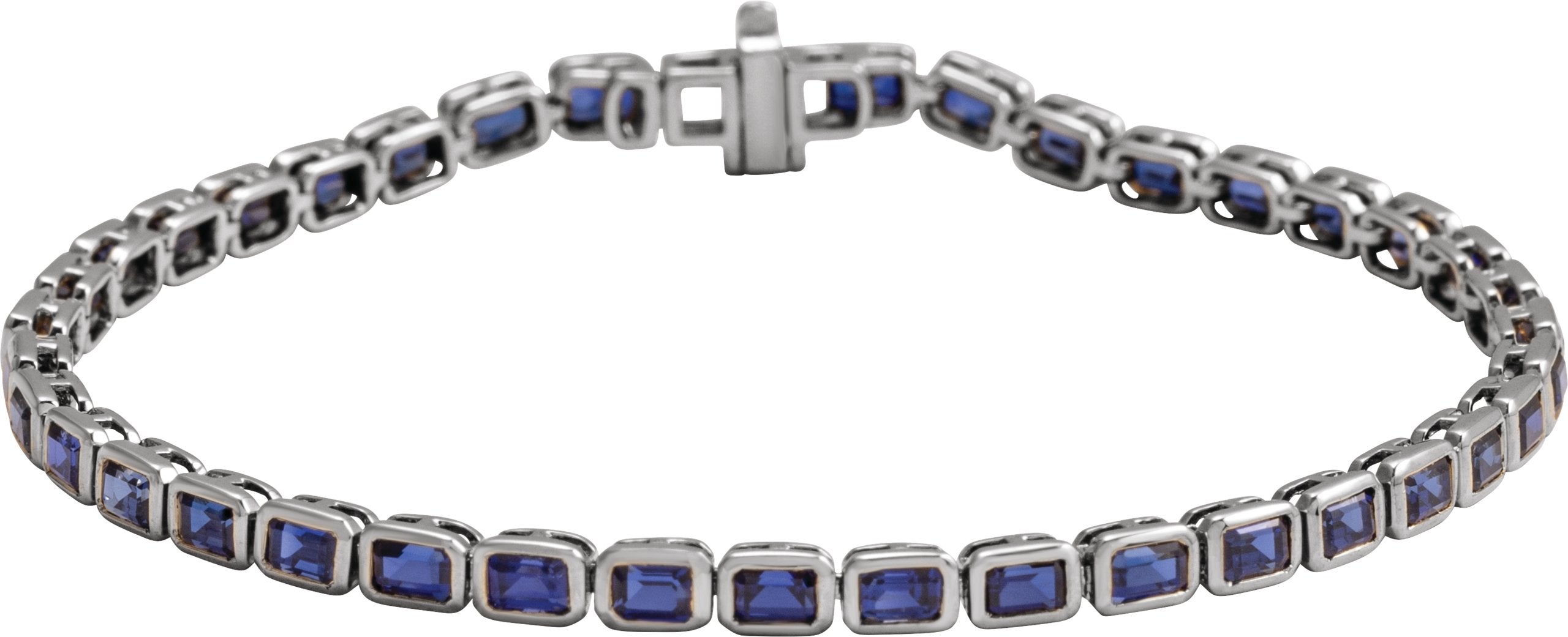 14K White Lab-Grown Blue Sapphire Line 7" Bracelet