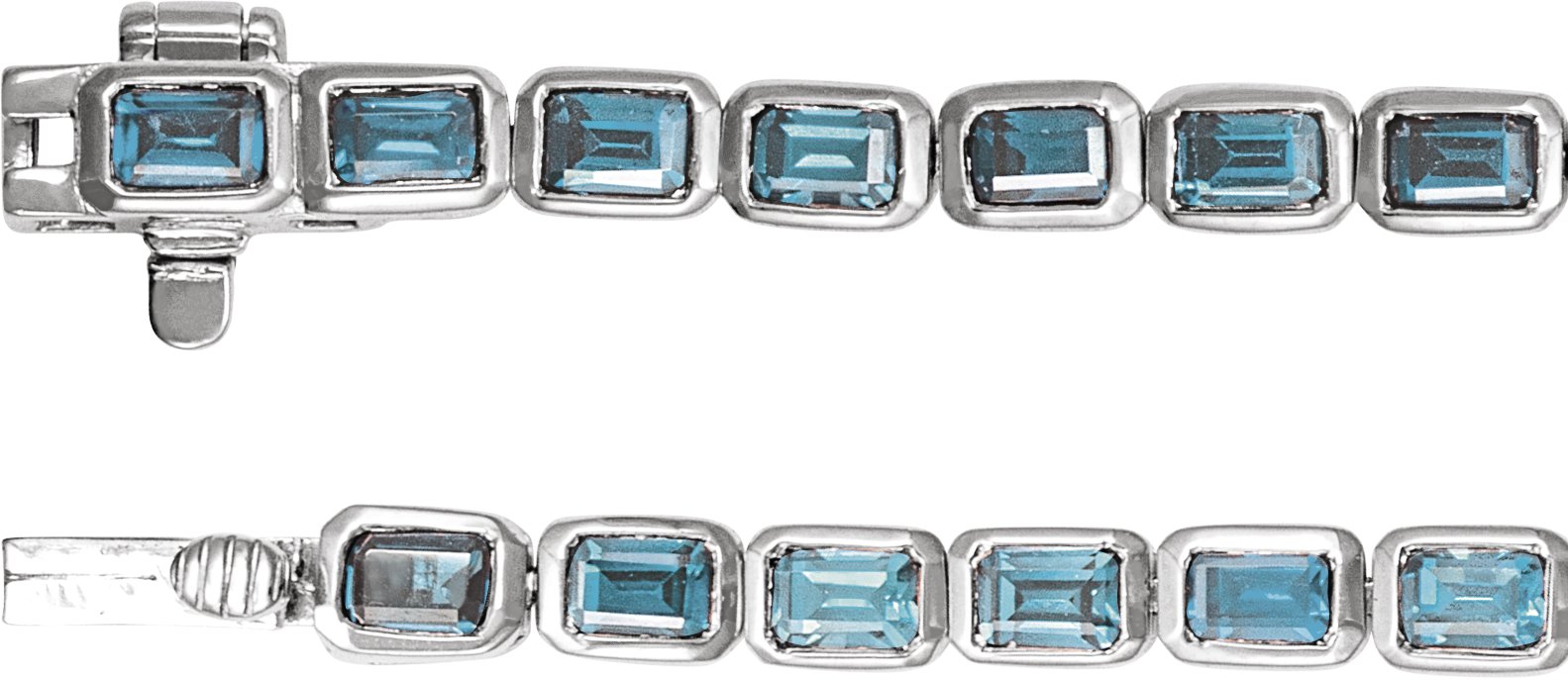 14K White Natural Sky Blue Topaz Line 7" Bracelet