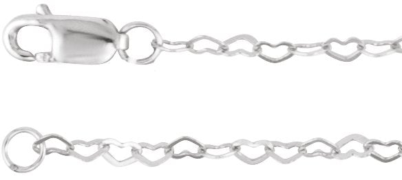 Sterling Silver 1.9 mm Heart 7" Chain