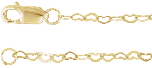 14K Yellow 1.9 mm Heart 7" Chain