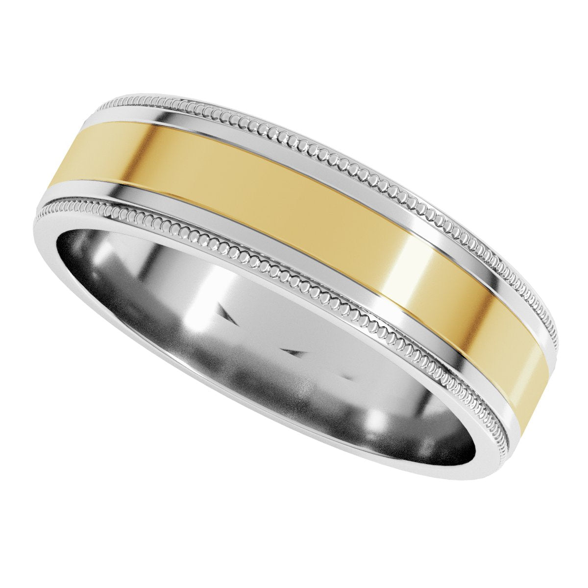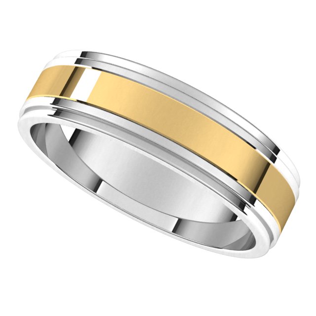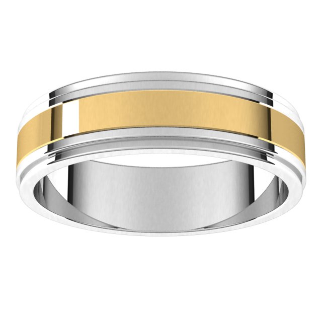 14K White/Yellow 6 mm Milgrain Inlay Flat Band Size 10