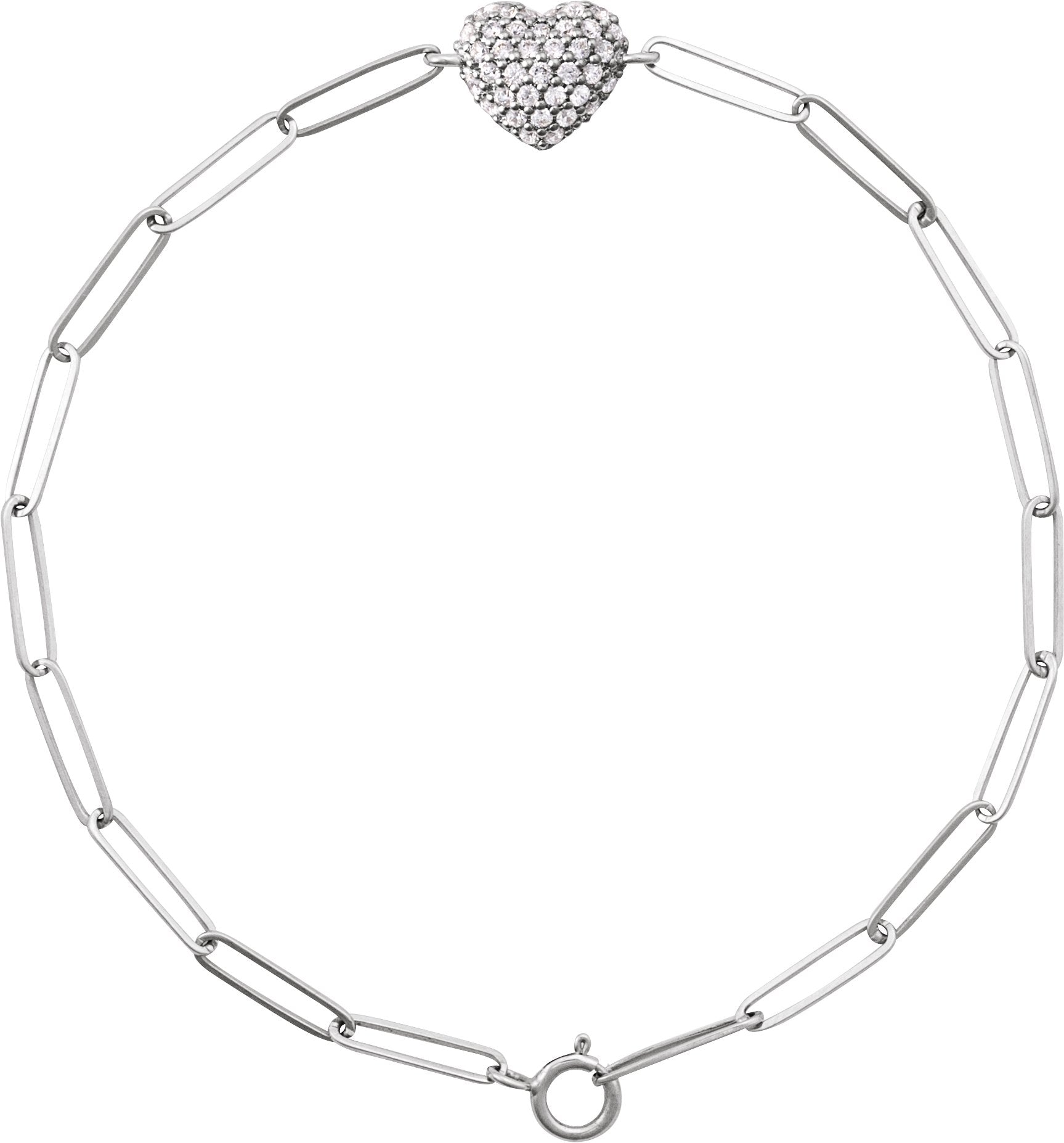 14K White 1/3 CTW Natural Diamond Heart & Paperclip-Style 7" Bracelet