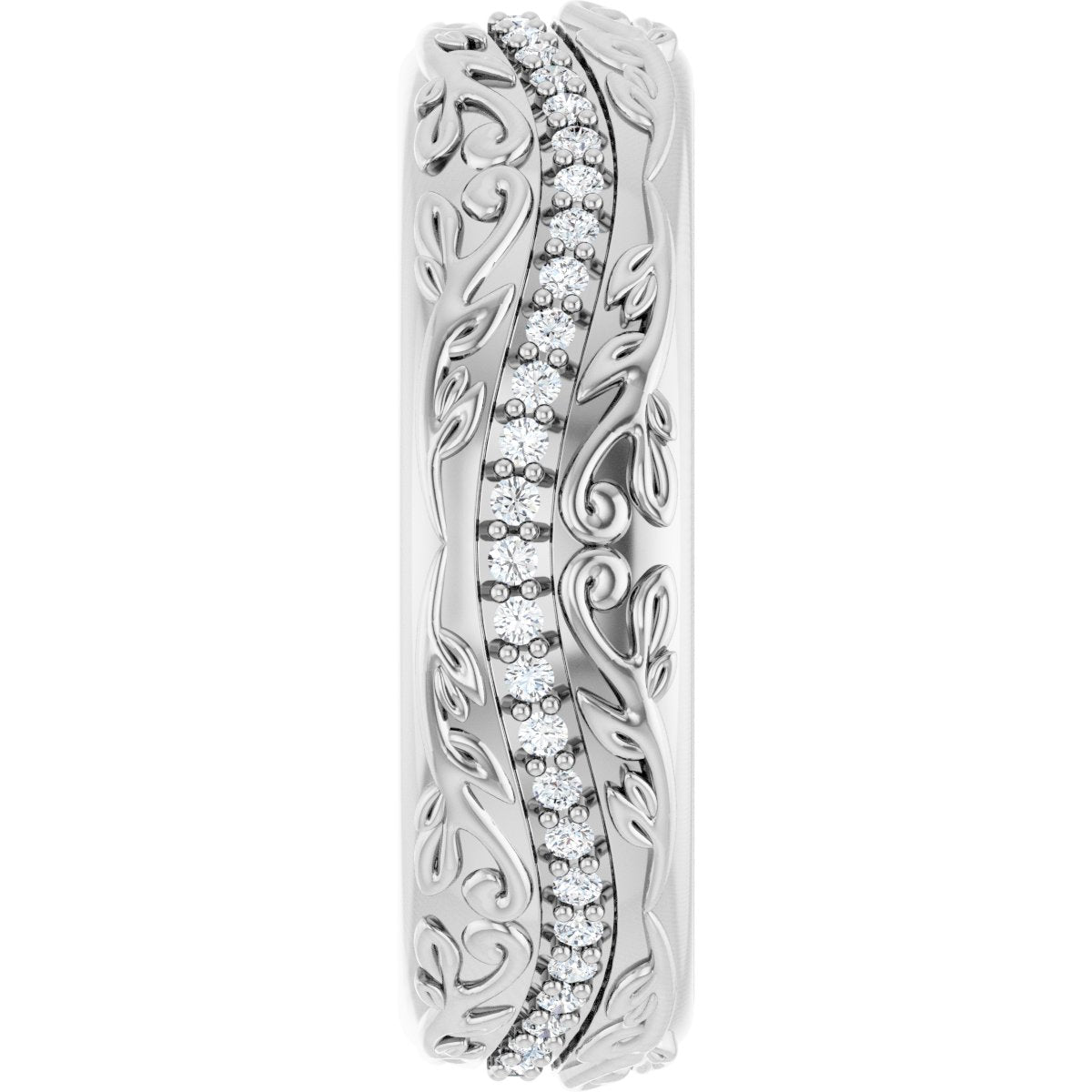 14K Yellow/White/Yellow 5 mm Milgrain Edge Grooved Comfort-Fit Half Round Band Size 11.5