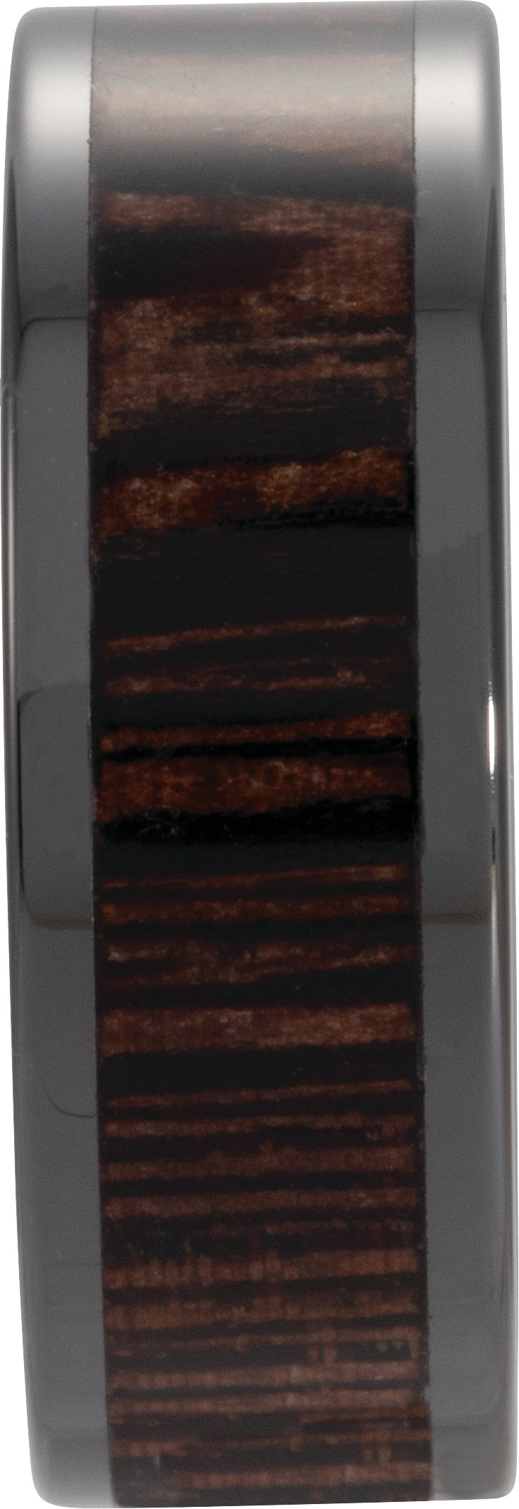 Black Ceramic Wenge Wood Inlay 8 mm Comfort-Fit Flat Band Size 12
