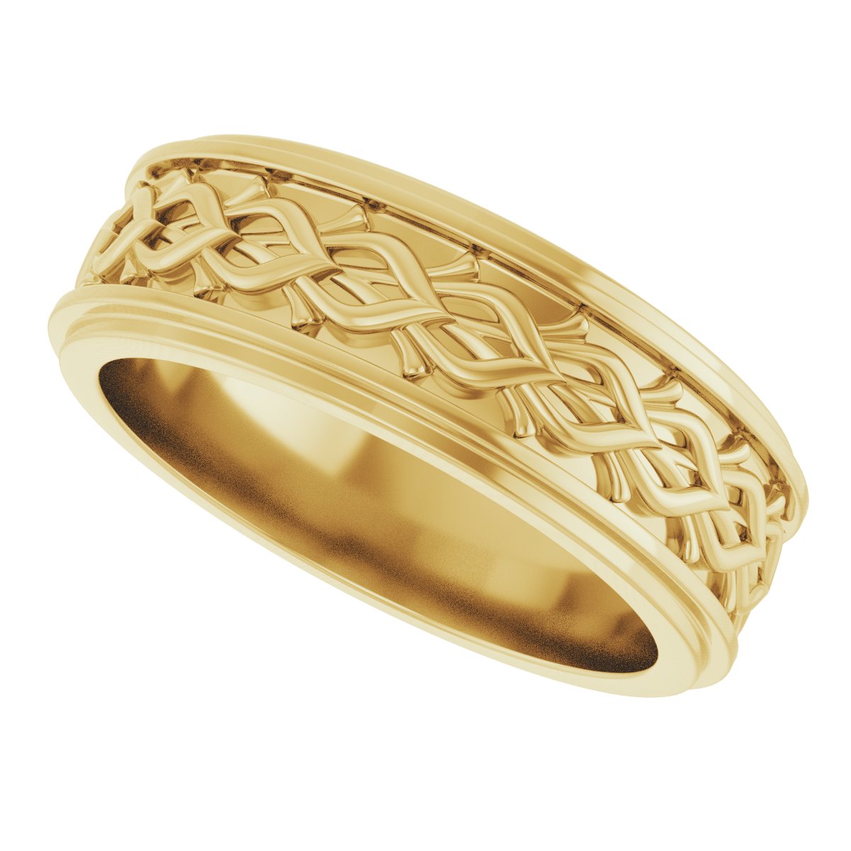 14K Yellow 7 mm Double Stepped-Edge Sculptural Flat Band Size 10