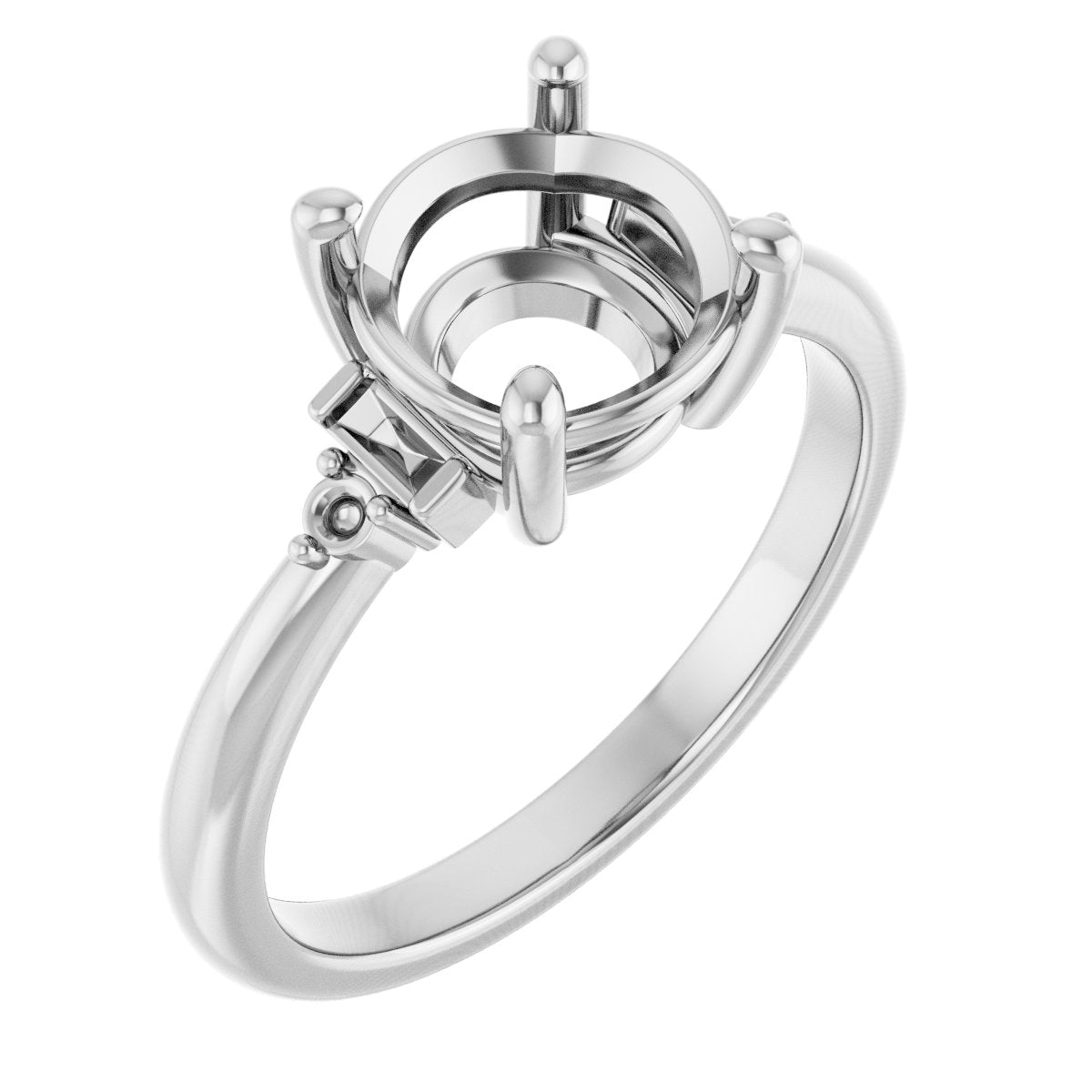 14K White 8 mm Round .08 CTW Lab-Grown Diamond Semi-Set Engagement Ring