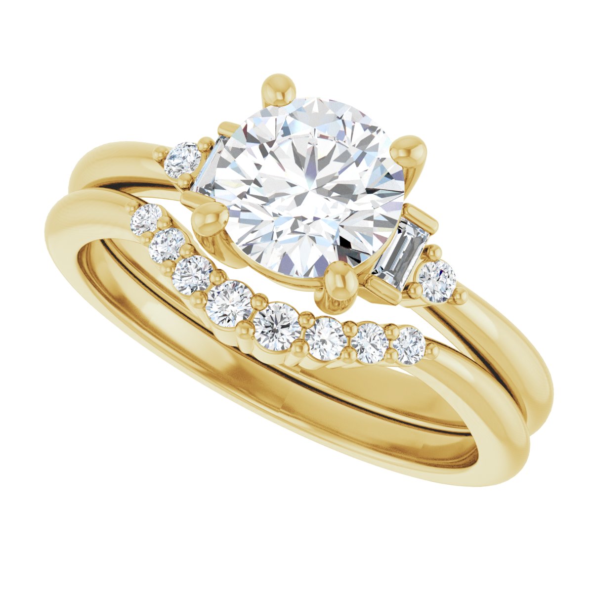 14K Yellow 6.5 mm Round .07 CTW Lab-Grown Diamond Semi-Set Engagement Ring