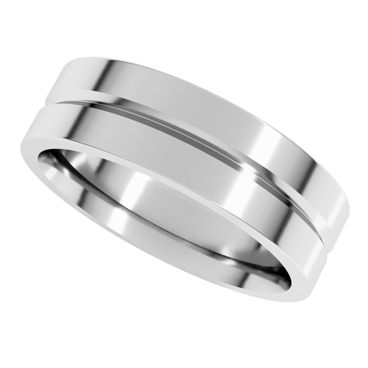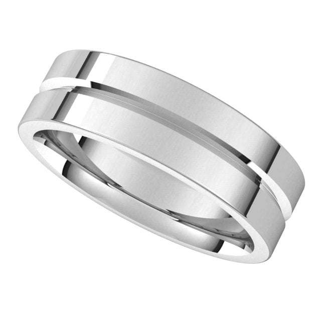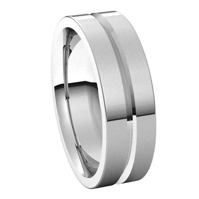 14K White 6 mm Grooved Comfort-Fit Flat Band Size 9