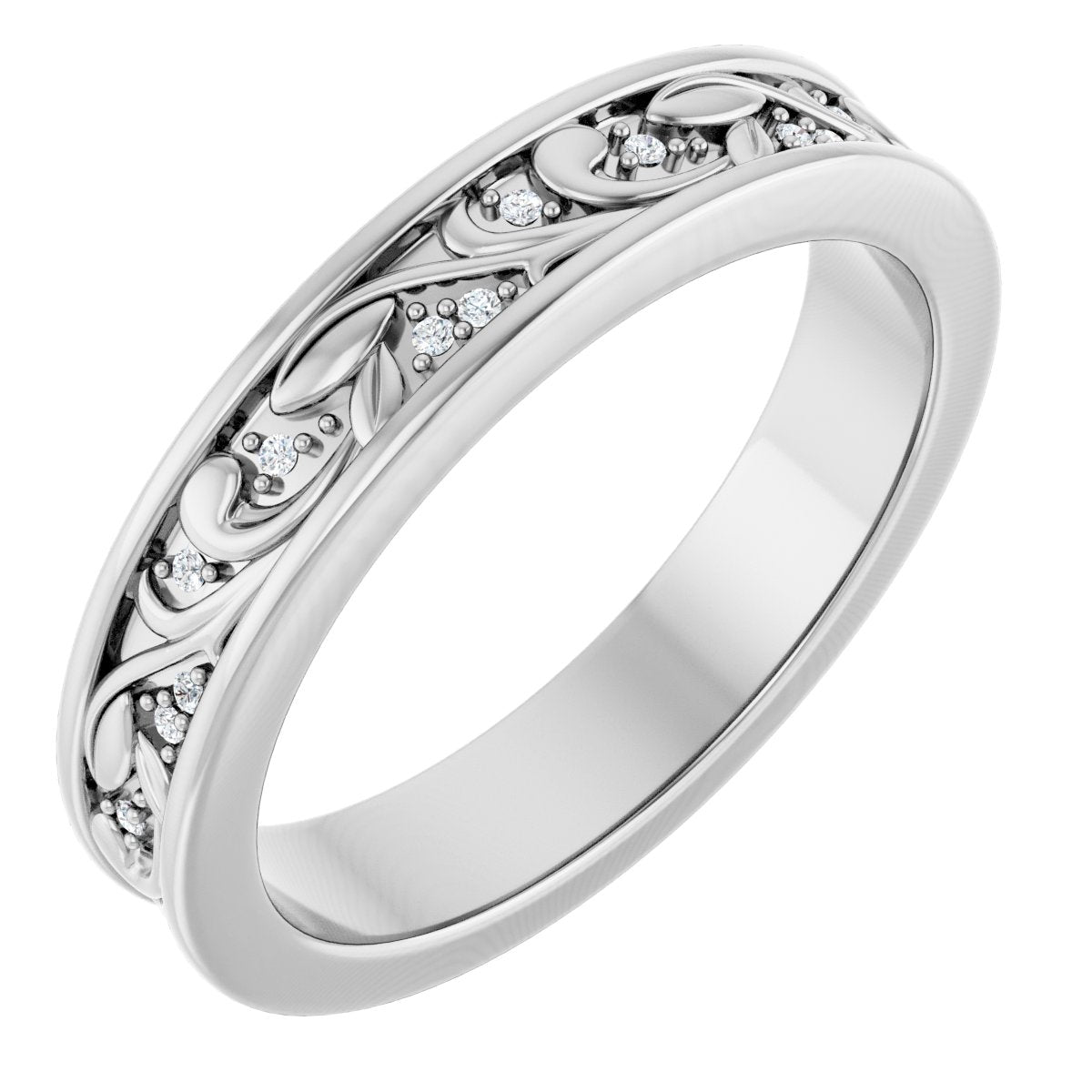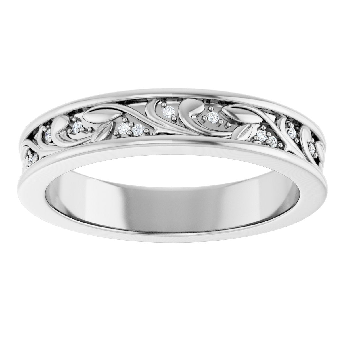 14K White .06 CTW Natural Diamond Floral Band Size 7